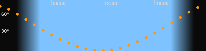 Höchster Stand (Kulmination)23:45 Uhr (h = 79,5°)