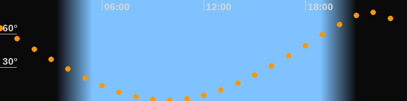 Höchster Stand (Kulmination)21:47 Uhr (h = 79,5°)