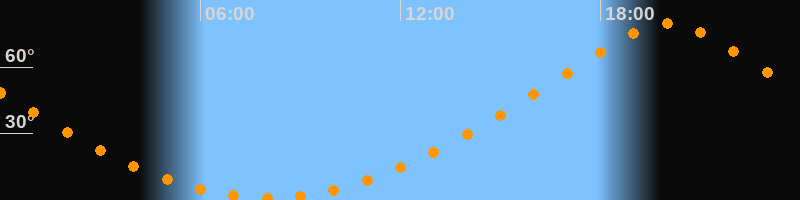 Höchster Stand (Kulmination)20:01 Uhr (h = 79,5°)