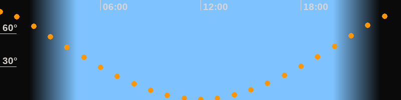Höchster Stand (Kulmination)23:55 Uhr (h = 79,5°)