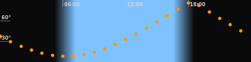 | Höchster Stand (Kulmination) | 18:16 Uhr (h = 87°) |
