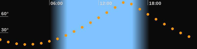 | Höchster Stand (Kulmination) | 15:19 Uhr (h = 87°) |