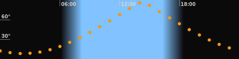 | Höchster Stand (Kulmination) | 14:15 Uhr (h = 87°) |