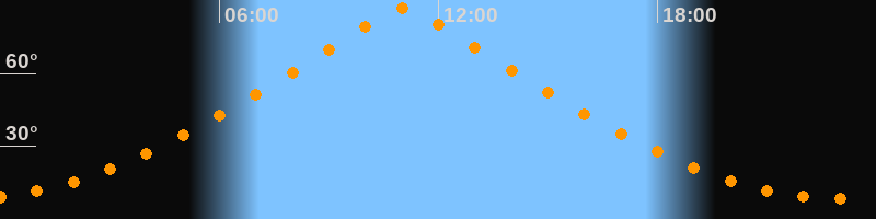 | Höchster Stand (Kulmination) | 11:02 Uhr (h = 87°) |