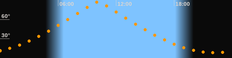 | Höchster Stand (Kulmination) | 10:07 Uhr (h = 87°) |