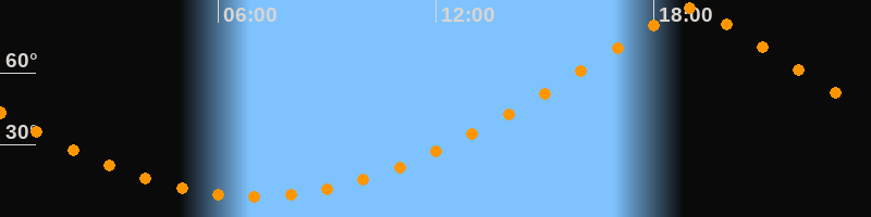 | Höchster Stand (Kulmination) | 19:01 Uhr (h = 87°) |