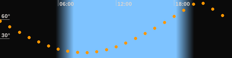 | Höchster Stand (Kulmination) | 20:35 Uhr (h = 87°) |