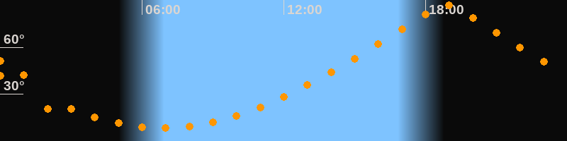 | Höchster Stand (Kulmination) | 18:52 Uhr (h = 87°) |