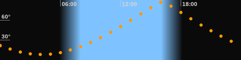 | Höchster Stand (Kulmination) | 16:07 Uhr (h = 87°) |
