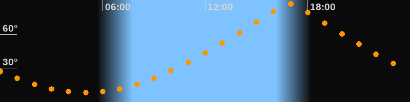 | Höchster Stand (Kulmination) | 16:56 Uhr (h = 87°) |