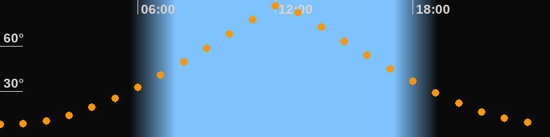 | Höchster Stand (Kulmination) | 12:14 Uhr (h = 87°) |