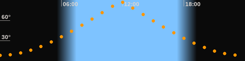 | Höchster Stand (Kulmination) | 11:51 Uhr (h = 87°) |