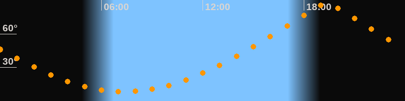 | Höchster Stand (Kulmination) | 19:20 Uhr (h = 87°) |