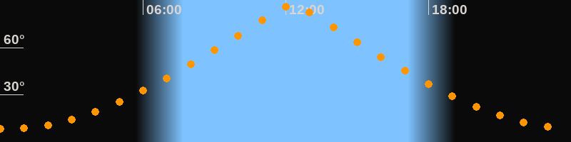 | Höchster Stand (Kulmination) | 12:16 Uhr (h = 87°) |