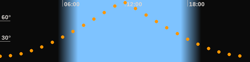 | Höchster Stand (Kulmination) | 11:48 Uhr (h = 87°) |