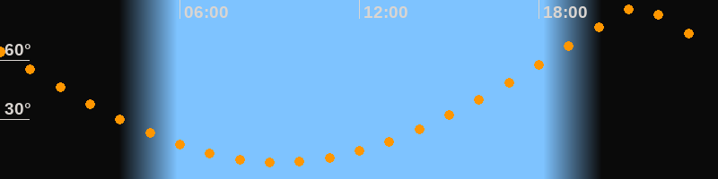 | Höchster Stand (Kulmination) | 21:19 Uhr (h = 87°) |