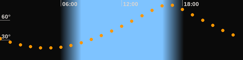 Höchster Stand (Kulmination)16:34 Uhr (h = 83,2°)