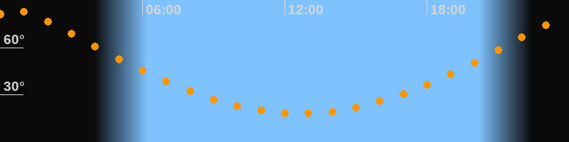 Höchster Stand (Kulmination)00:36 Uhr (h = 83,2°)