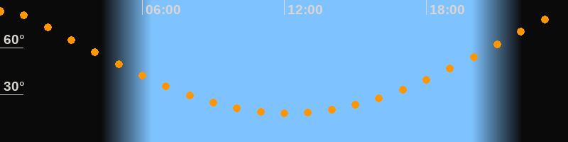 Höchster Stand (Kulmination)00:09 Uhr (h = 83,2°)