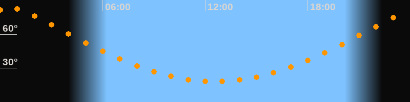 Höchster Stand (Kulmination)00:33 Uhr (h = 83,2°)
