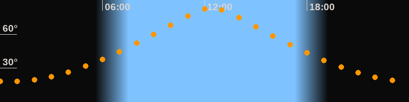 Höchster Stand (Kulmination)12:24 Uhr (h = 83,2°)