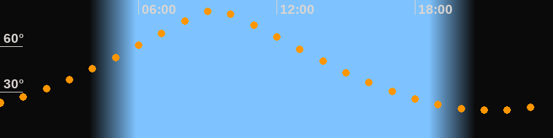 Höchster Stand (Kulmination)09:20 Uhr (h = 83,2°)