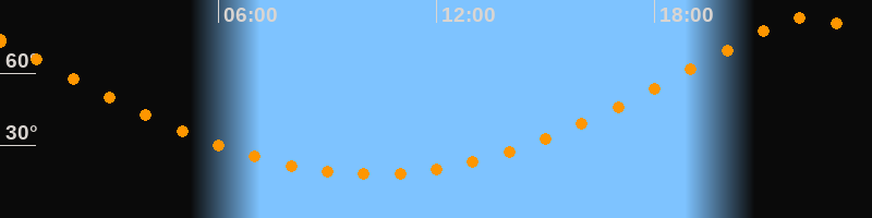 Höchster Stand (Kulmination)22:13 Uhr (h = 83,2°)