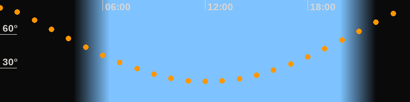 Höchster Stand (Kulmination)00:04 Uhr (h = 83,2°)