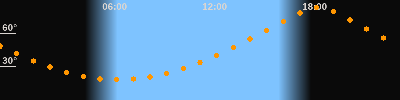 Höchster Stand (Kulmination)19:04 Uhr (h = 83,2°)