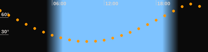 Höchster Stand (Kulmination)22:00 Uhr (h = 83,2°)