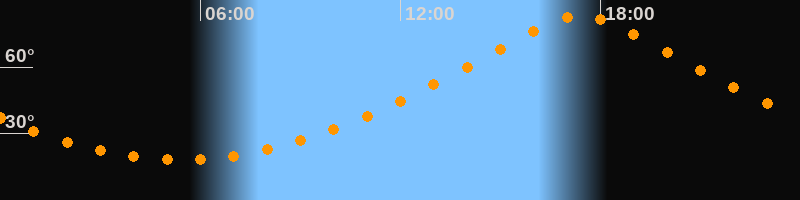 Höchster Stand (Kulmination)17:24 Uhr (h = 83,2°)