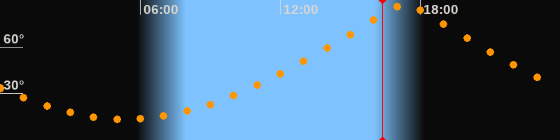 | Höchster Stand (Kulmination) | 17:21 Uhr (h = 87,9°) |