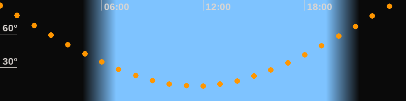 | Höchster Stand (Kulmination) | 23:30 Uhr (h = 87,9°) |