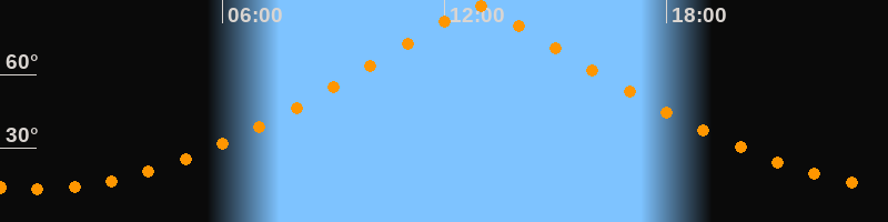 | Höchster Stand (Kulmination) | 12:53 Uhr (h = 87,9°) |