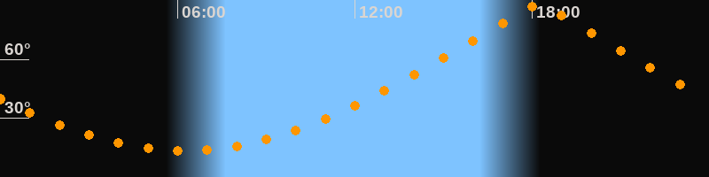 | Höchster Stand (Kulmination) | 18:13 Uhr (h = 87,9°) |