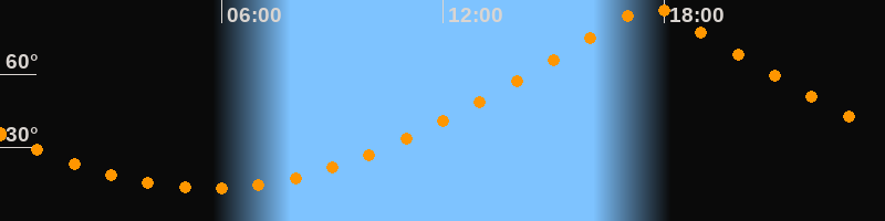 | Höchster Stand (Kulmination) | 17:37 Uhr (h = 87,9°) |
