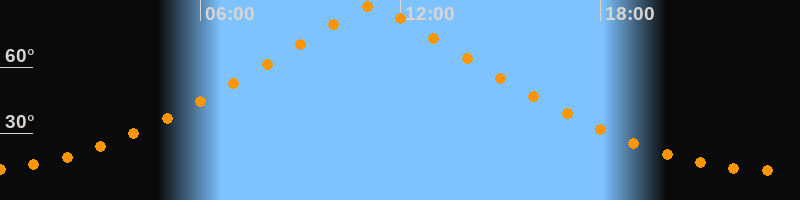 | Höchster Stand (Kulmination) | 11:08 Uhr (h = 87,9°) |
