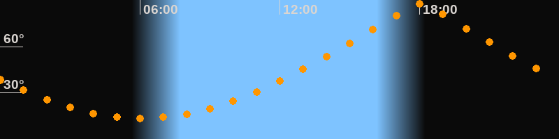 | Höchster Stand (Kulmination) | 18:02 Uhr (h = 87,9°) |