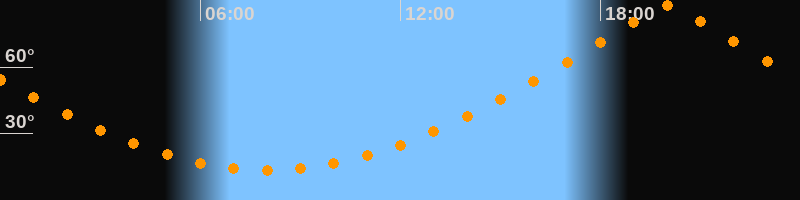| Höchster Stand (Kulmination) | 20:01 Uhr (h = 87,9°) |