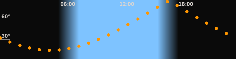 | Höchster Stand (Kulmination) | 17:08 Uhr (h = 87,9°) |