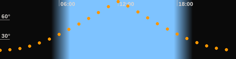 | Höchster Stand (Kulmination) | 12:02 Uhr (h = 87,9°) |