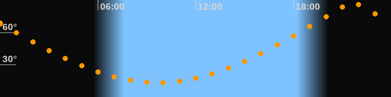 | Höchster Stand (Kulmination) | 21:38 Uhr (h = 87,9°) |