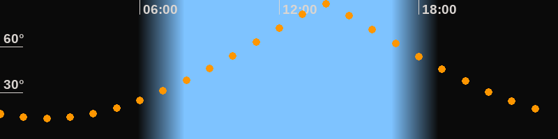 | Höchster Stand (Kulmination) | 13:57 Uhr (h = 87,9°) |