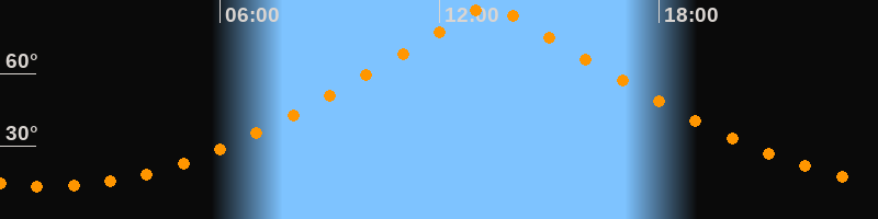 | Höchster Stand (Kulmination) | 13:22 Uhr (h = 87,9°) |