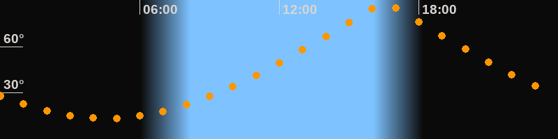 | Höchster Stand (Kulmination) | 16:31 Uhr (h = 87,9°) |