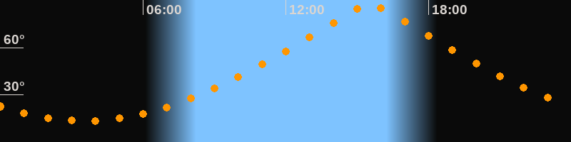 | Höchster Stand (Kulmination) | 15:32 Uhr (h = 87,9°) |