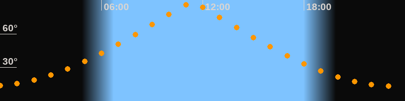 | Höchster Stand (Kulmination) | 11:20 Uhr (h = 87,9°) |