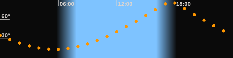 | Höchster Stand (Kulmination) | 17:35 Uhr (h = 87,9°) |