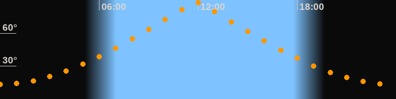 | Höchster Stand (Kulmination) | 11:53 Uhr (h = 87,9°) |