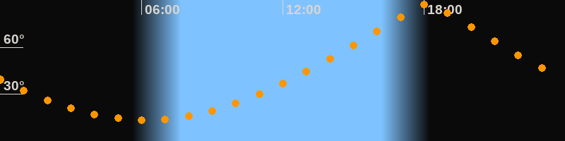 | Höchster Stand (Kulmination) | 18:08 Uhr (h = 87,9°) |